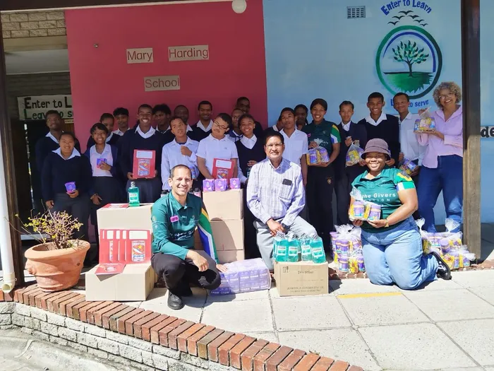The Gift of the Givers Foundation, with teachers and children at Mary Harding School on Friday.