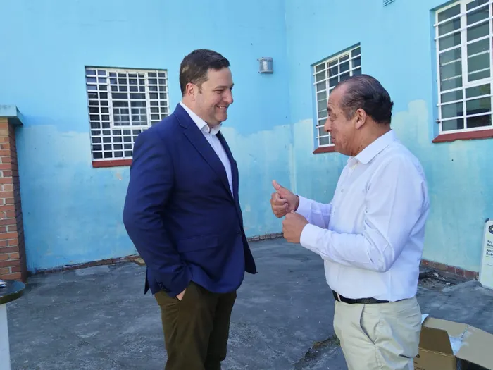 Mayor Geordin Hill-Lewis in conversation with local councilor Rashid Adams.
