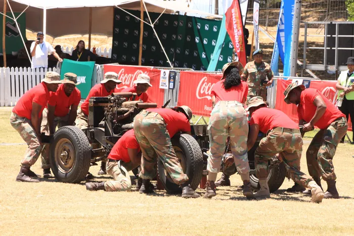 Members of the SANDF's Technical Services Corps assemble a military Jeep in record-breaking time, at the weekend's DSTC Mitchell's Plain Festival, at Westridge Gardens.