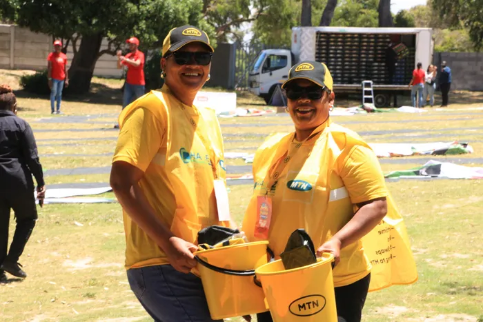 Washiela Moosa and Waleeka Karlie, from Tafelsig, serving their brand sunshine in matching yellow, at the weekend's bumper community festival.