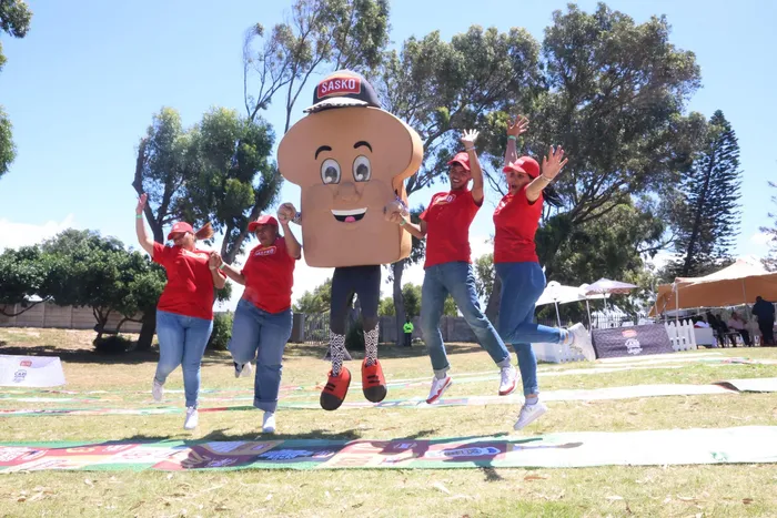 Sasko Sam and his cohorts jump for joy at the weekend's DST Mitchell's Plain Festival.