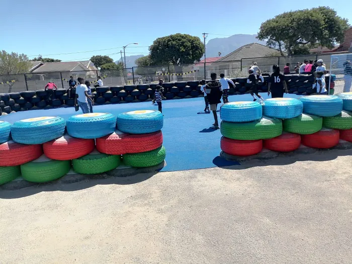 “Today is really the start of what we would love to see, a pitch created out of 200 tyres, filled with building rubble and topped with recycled AstroTurf. Our vision is to see these kinds of pitches in every single school in Hanover Park and Heideveld,” he said.