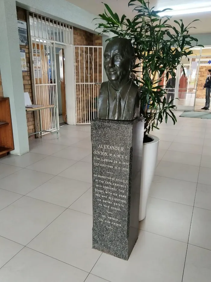The statue of Alexander Sinton in the foyer as you enter the school, ready to welcome you.